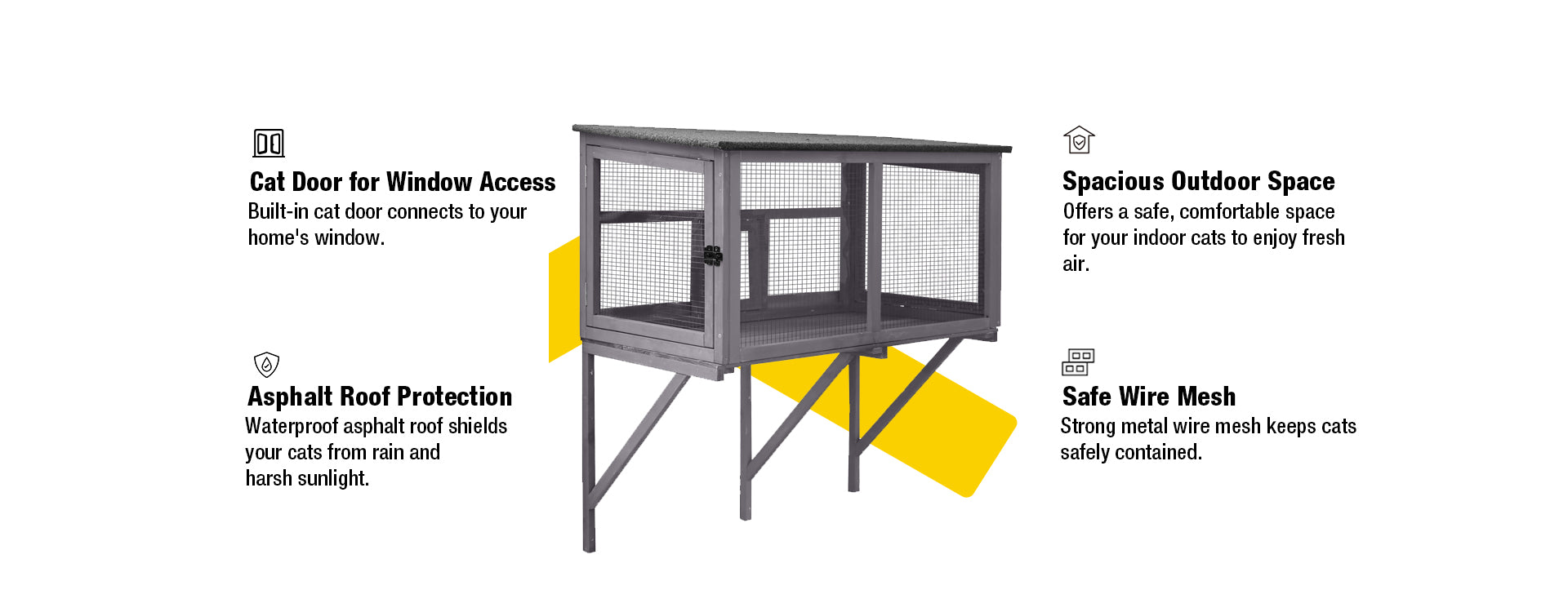 - 【Sturdy & Safety】: The upgraded version of Cat Run adds the surrounding reinforcement wooden strip structure to the product to make it more robust and durable. A waterproof asphalt roof is perfect for outdoor use.