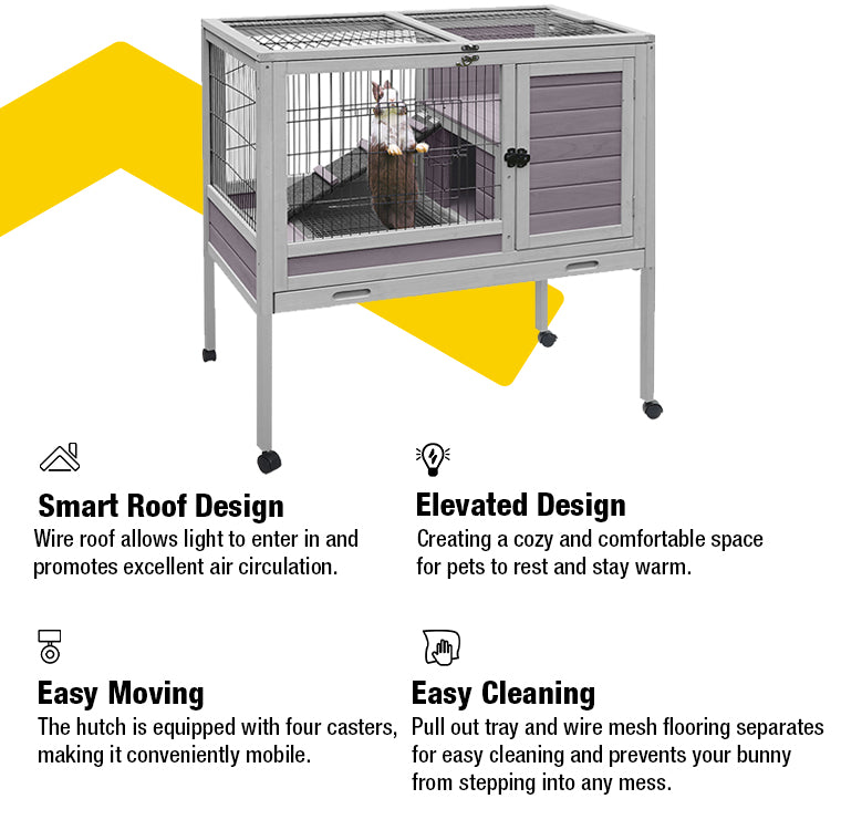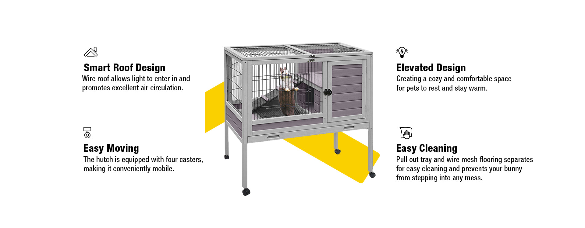 【Easy Cleaning】The roof of the hutch is hinged for easy access and a fully pull out tray for an efficient cleaning process.