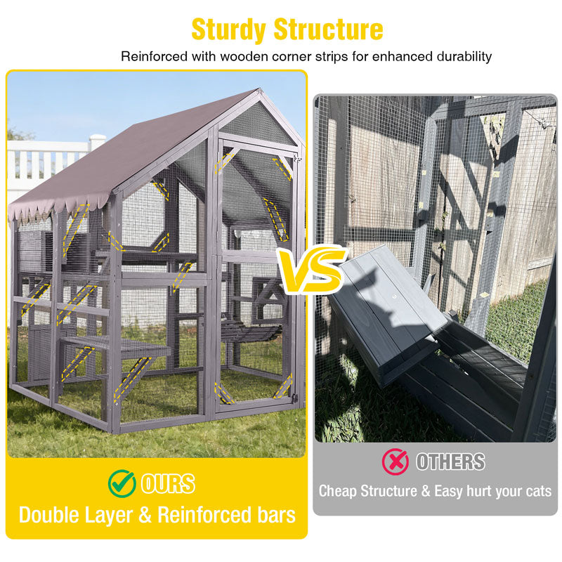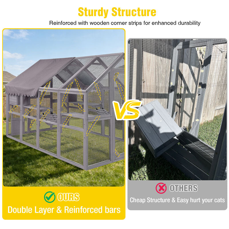 The roof tarp for cat enclosures offers superior protection, easy installation, convenient access, pet-safe materials, and excellent ventilation. It is the perfect solution for enhancing your cats' outdoor experience while keeping them secure and comfortable.