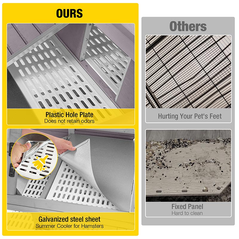 - No-Smelly-The platform has a PVC layer for easy cleaning and urine will not absorb into the wood. The wire top keeps the cage dry and provides proper ventilation for your pet.