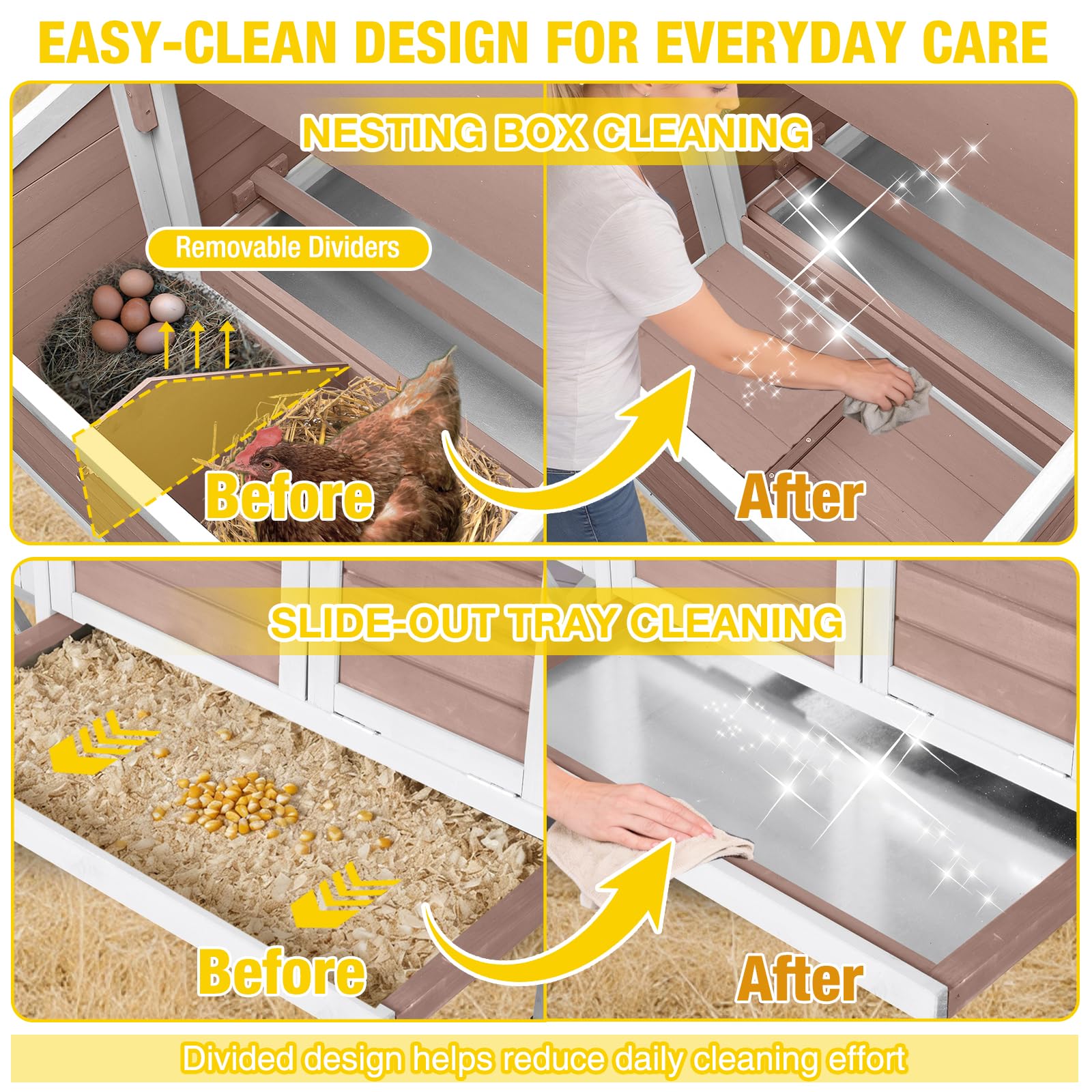 Secure Nesting Box with Lock: Includes a locking nesting box with a divider to keep eggs clean and prevent them from rolling